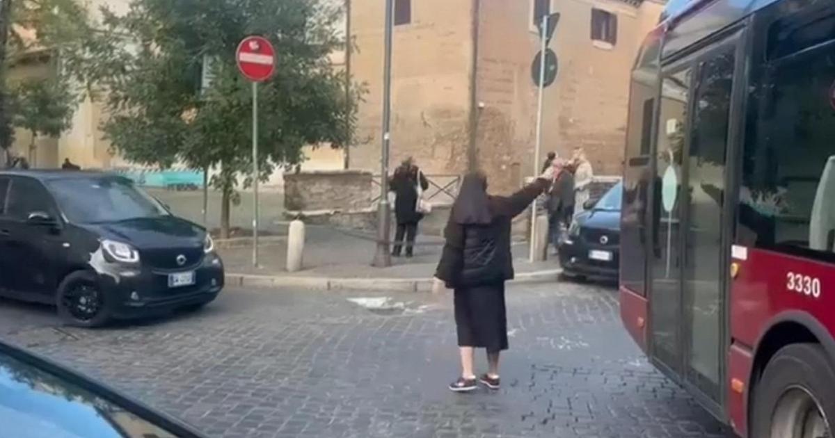 In mezzo a questa confusione, è emersa una figura inaspettata: una suora. Vestita con una tonaca nera, un velo in testa e un piumino per proteggersi dal freddo, la religiosa ha deciso di intervenire. Con una determinazione sorprendente, si è posizionata al centro dell’incrocio per gestire il traffico. Ha iniziato a dirigere le auto, invitando alcuni conducenti a tornare indietro e altri a svoltare a sinistra o a destra per liberare il passaggio.